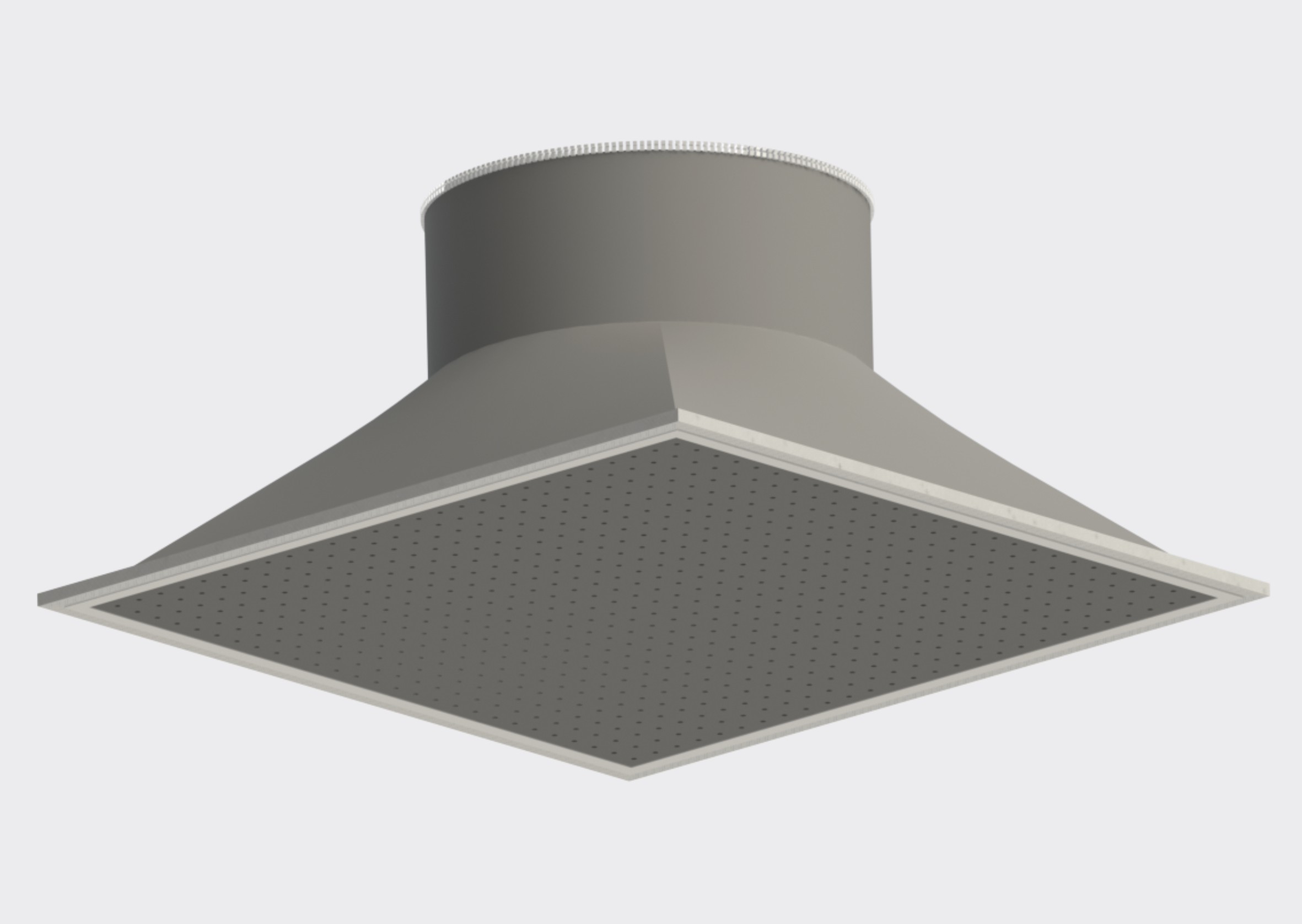 DiffuSox™ is made of metal frame and highly permeable fabric, the air dispersion surface attach to the metal frame via Velcro, connecting to metal inlet via square to round fitting and detachable inlet. The design of DiffuSox™ can be customized in view of its application.