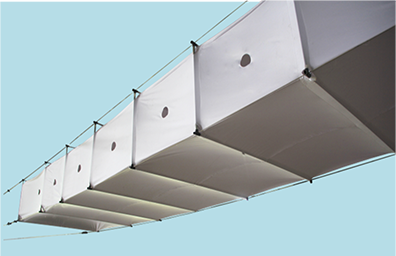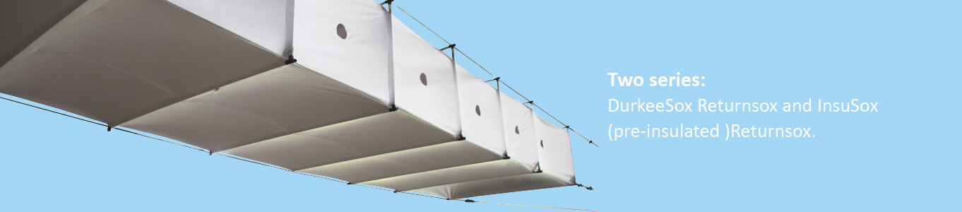 Made of high-strength nano-alloy material, ReturnSox™ utilize exclusively-owned patented internal support frame to maintain the flexible air duct in rectangle shape and return air under negative pressure. Matching with air vents, air dampers, Returnsox™ is a replacement of traditional return air duct with cable suspension system to install on site. According to the material, there are two types: DurkeeSox Returnsox and InsuSox Returnsox.