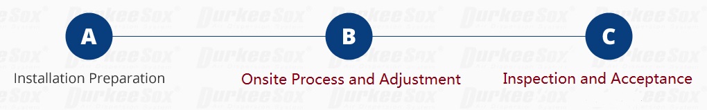 Upholding excelsior installation process management,Durkee adopts 3x3 engineering service to control the whole process during installation preparation, onsite process and adjustment, inspection and acceptance, besides, Durkee has a systematic guidance for proper installation process.
